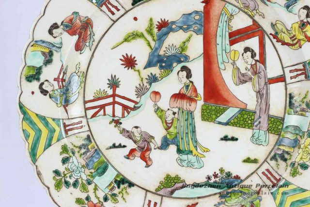 RYQQ35-OLD_Antique famille rose hand painted Chinese ancient ladies pattern pottery plates