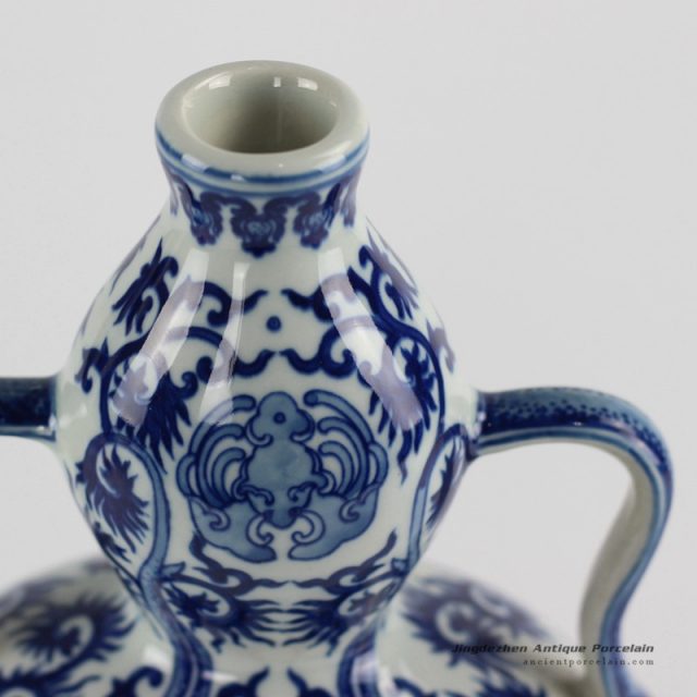 RYUU18_dynasty design blue and white dragon pattern ceramic gourd shape vase with handle